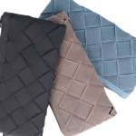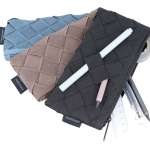 「AMUGOMU」はその名のとおり、表面に編み込まれたゴム生地素材を採用したフラットペンケース。伸縮性のあるゴム素材の特徴と、編み込みの構造を利用して、ゴムの隙間に差し込んだり挟むことでペンを固定することができます。