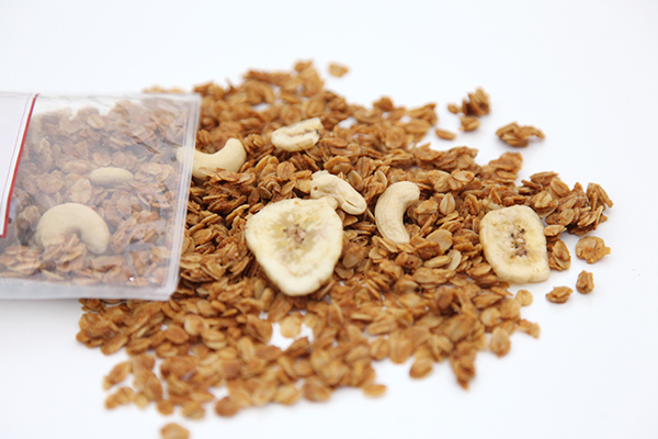 主原料となるオーツ麦は白米の19倍もの食物繊維を含み、カルシウムやミネラルもたっぷり。このオーツ麦にメープルシロップやはちみつ、菜種油を加えて低温でじっくり香ばしく焼き上げたものに、噛むほどに滋味あふれるドライフルーツやナッツをブレンドした。