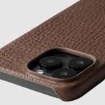個性豊かなシボの表情、手に柔らかくなじむ優しい感触は天然素材ならでは。ケースの端部分やカメラホールのフレームは丁寧なコバ塗りで仕上げることで、輪郭が引き締まったすっきりとした印象に仕上がっています。