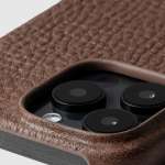 この秋登場の「レザーケース iPhone 15 Pro Max用・iPhone 15 Pro用・iPhone 15用」は、側面〜背面を保護するポリカーボネート製ケースをベースに、植物タンニンでなめした牛革にオイルをたっぷり染み込ませたオイルヌメ革を丁寧に張り込んだレザー製iPhoneカバー。