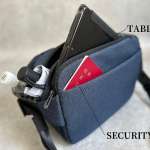 メイン荷室の隣に配置されたタブレット用スペースは幅30×高さ20cmの適度なサイズ感で、8.3インチ~12.6インチのiPadやタブレットなど端末類を収納。ポケットの両サイドに厚さ5mmのクッション材が入っており、電子機器を安全に保護します。さらにパスポートやチケットなど貴重品を入れておくのに適したセキュリティポケットを裏面側の最前面に搭載。旅行や出張の際に便利に使えます。