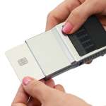 本製品は2種類のタイプから選べるのも特徴。1つ目が“プロテック2.0ブラッシュドクローム”。こちらはカードのデータ抜き取りを防止する“RFIDスキミングブロック”を搭載。合成樹脂による一体型ボディと二層のメタルコーティングが施されており、映り込みの無いクロームカラーで高級感があります。