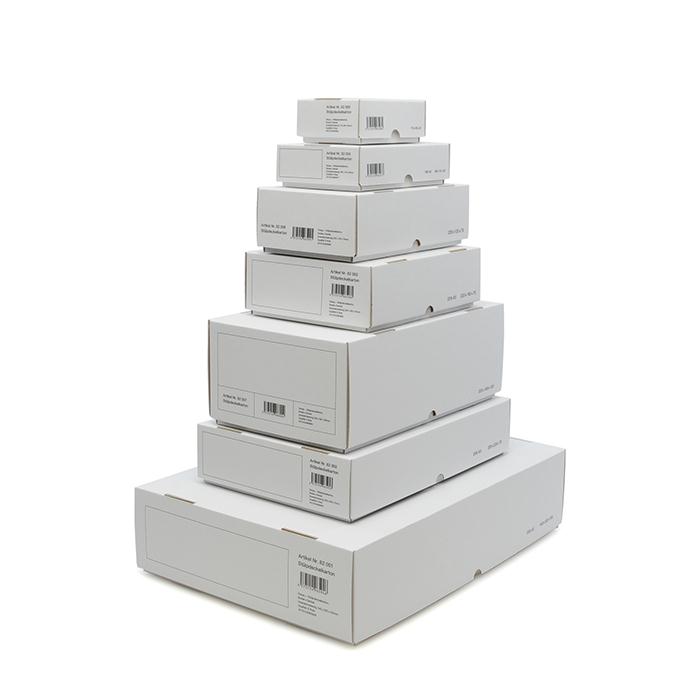 サイズも豊富なホワイトの段ボール箱。デザイン性も高いので、見せる収納としても使えそう。