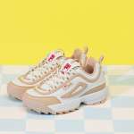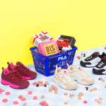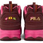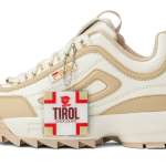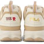 コラボならではのディティールとして、アッパーの右足の側面にはチロルチョコのモチーフを、左足にはチロルチョコのカラーパレットにアレンジしたFILAのロゴをデザインしたタグを搭載。