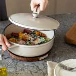 そのまま食卓に出せるのは、浅型ならでは。料理の温かさもキープできるので、大皿代わりに使うのもアリ。卓上でのすき焼きもこの鍋なら華やか。ホームパーティでも活躍しそうです。