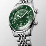 ひと目で「ロンジン レジェンドダイバー」とわかる象徴的なダイヤルは日付表示がなく、細長いインデックスとアラビア数字、ポリッシュ仕上げ&ロジウムカラーの時分針を搭載。