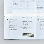週間ページはバーチカルとなっていているため、予定を上段の月間ページに記入し、週間ページに該当時間を記入するという使い方ができます。