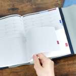 カバーにはカードスリットが付属しており、カード型の付箋や予備の名刺などを入れておくことができます。上下に分かれた手帳で、アナログのスケジュール管理を効率化しましょう!