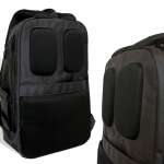 背面全体を収納スペースにしたPC用ポケットはウレタンクッションを内蔵。ノートPC(16インチサイズまで対応)用のポケットとタブレット用ポケットがそれぞれ1個ずつ、ファスナーポケット1個、ケーブルやマウス用のメッシュポケットが2個搭載されています。