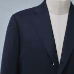ラペル(下襟)を少し細目に仕立て、裏地は背抜き仕様にすることでオールシーズン着まわせるとともに、驚くほどの軽さを実現しています。