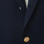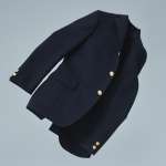 胸にはパッチポケット、腰にはパッチポケットにフラップを搭載したカジュアルな印象ながら、段返り3つボタンと、アメリカの老舗メタルボタンメーカーであるウォーターバリー社のオリジナル金釦を採用するなど、トラディショナルなディティールもプラスしています。