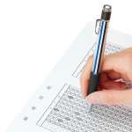 マークのしやすさを考慮してシャープペンシルの軸は、やや太めの直径11.5mmに設定。グリップの中央を細くしたことで筆圧がかかりやすく、濃くムラなく解答欄をマークできます。またグリップ部は長さ40mmのノンスリップラバーグリップが使われ、手脂で滑りにくくなっています。