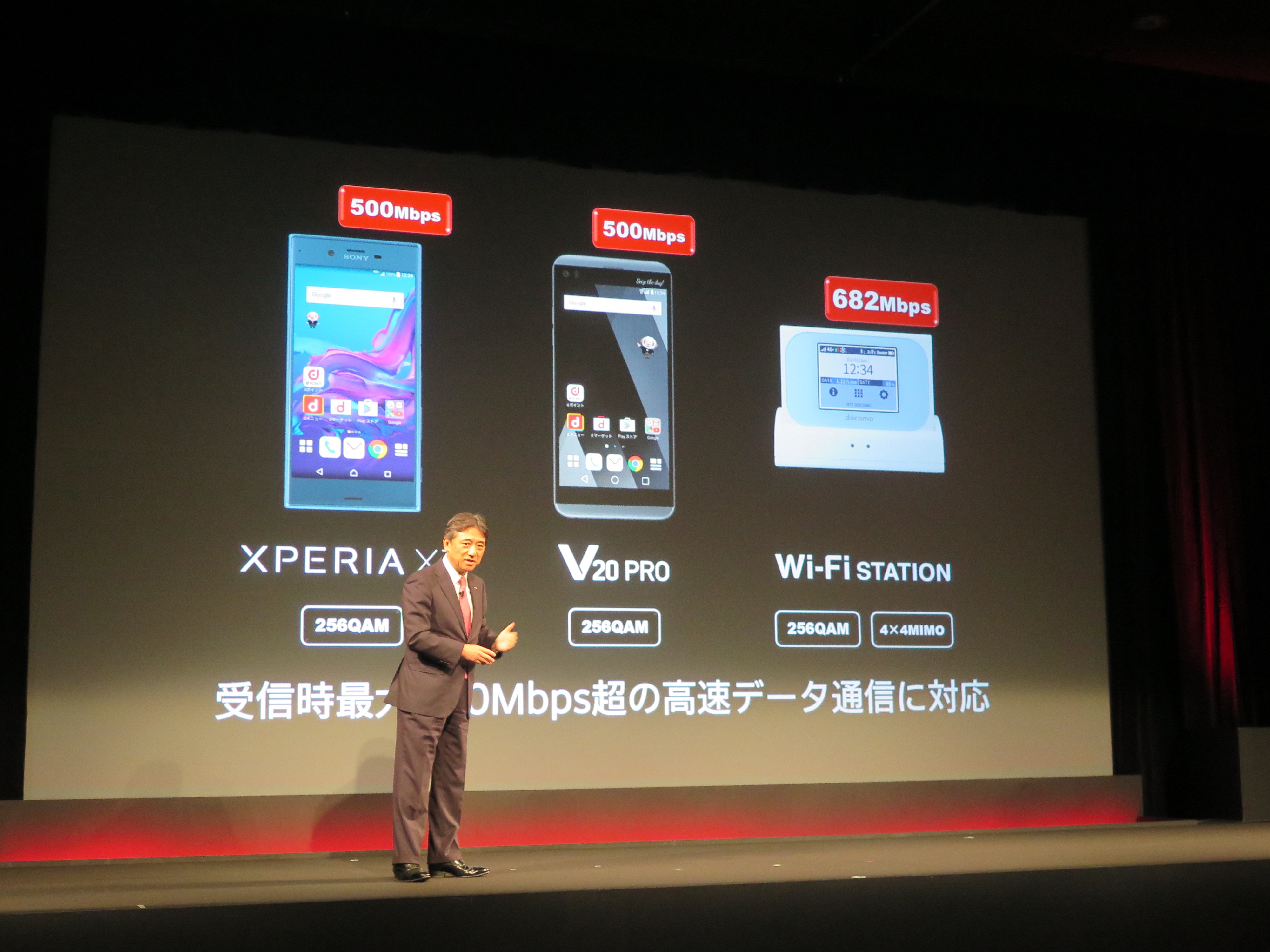 新ラインナップの中でハイエンドに位置付けられるのが、「256QAM」という新しい通信の高速化技術に対応する「Xperia XZ」と「V20 PRO」。どちらも来年3月から提供される下り最大500Mbpsに対応しています。さらに、両モデルは、カメラと音楽性能も強化されています。