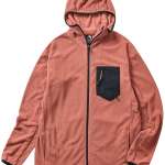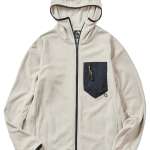 「オルトテックサーマルフルジップフーディ」(1500円)は、ジグザグ形状のフリース生地を採用。通気性と保温性のバランスに優れ、秋シーズンはそのままアウターとして着用可能。薄手の生地なので、寒さが厳しくなる晩秋以降はジャンパーやジャケットの下に着込めます。胸ポケットのファスナー引手にホイッスルを、また袖口には親指を通せるサムホールを装備。