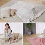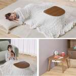 いずれもシングルサイズの毛布やブランケットをこたつ布団の代わりに使用可能。毛布やブランケットなら気軽に洗濯できますし、使用しない時は省スペースで収納できます。