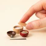さらに、天然本漆を使用した「食洗機で洗える漆椀」と「食洗機で洗える木箸」のミニチュアも付属しています。この漆椀は、漆の艶やかさに加え、底に描かれた中川政七商店のマークまでしっかりと再現されているのが特徴です。