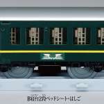 2両目の寝台列車オハネフ25-500はB寝台2段ベッドシートとはしごがあしらわれています。3両目のオハ25-550は大型窓が特徴的なサロンカー「サロン・デュ・ノール」。