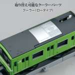 2両目用のパンタグラフ(ハイタイプ)のほか、2種類のクーラーパーツ(ハイタイプ、ロータイプ)も取り替え可能です。
