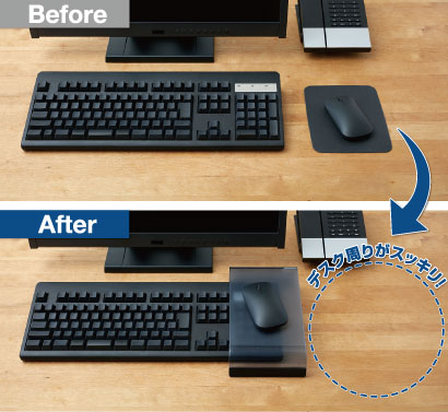 それだけ? と思うことなかれ。キーボードとマウスの距離が近くなることで右手の移動距離が小さくなるんです。細かなことですが、頻繁に行う動きだからこそ、チリも積もれば山となる。確実に作業効率が上がります!
