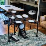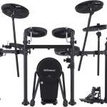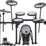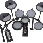 ドラムの構成は、キック、スネアドラム、タム×3、ハイハットシンバル、クラッシュシンバル、ライドシンバルとなっており、そのほか、ハイハット・コントロール・ペダルとノイズイーター(ペダル用のマット)×2、専用ビーター、ドラム・スタンドが付属します(キックペダルとドラムスローンは付属しません)。