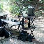 本体素材は軽く持ち運びやすいアルミ合金ですが、荷重が分散されるクロスフレーム構造を採用することで高い安定性を実現。静止耐荷重はいずれのモデルとも、テーブル時で40kg、ラック時で棚板1枚あたり10kgとなっています。