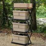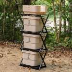 “ラックモード”にトランスフォームした「タナカテーブル」を自宅のガレージやDIYルームにセットしておき、愛用ギアは「ヨクミルヤーツ」に用途ごとに収納。出かけるときはボックスごとクルマに積み込み、最後にたたんだ「タナカテーブル」も一緒に載せて出発!なんて使い方もできて便利そう(ただし「タナカテーブルM」&「ヨクミルヤーツS」の組み合わせではフタを外した状態でのみ収納可能。外したフタは最上部に載せておくのがオススメです)。