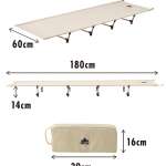 「軽くて設営も簡単となると耐久性の方もそれなりなのでは」と思いきや、しっかりとした張り具合で安定感も抜群、耐荷重量は120kgとなっているので体格の大きな人でも安心して使用できます。ただし使用時サイズは全長180×幅60×高さ14cmとややコンパクト。ただ、ミニマムなソロテント内で使うことを考えると、これくらいのサイズ感はちょうどいいかも。