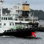 ▲横須賀で見たタグボート。船首にずらりと取り付けられたタイヤがいかにもタグボートらしいのでコレだ!と思ったのだが…