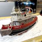 今回製作のハーバータグボートはアメリカはロサンゼルス港で使われているということなので、じゃあ太平洋のカリフォルニア…ウエストコースト(なんか80年代)なのねということで、青味の強い海のイメージで色を重ねています。とは言うものの、海の色に決まりはないので、自分の思う色で仕上げればいいと思います。