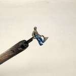 波のカタチができたら、丸一日乾燥させます。乾燥後に不自然な部分をデザインナイフやヤスリを使って削る、あるいは追加でモデリングペーストを盛るなどして細部を仕上げたら、いよいよ海面を塗装していきます。