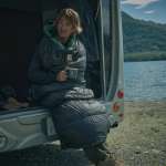 ファスナーを開けると手足を出せる構造で、裾丈は2段階で調節が可能。車中泊での利用体全体を包んだ温かな状態で釣りの準備にいそしむのもOK。生地は15Dの軽量リップストップナイロンを使用し、付属のスタッフバッグに収納してコンパクトに携行できます。展開時のサイズは長さ200cm×幅80cm(適応身長は166-178cm)、収納時は20cm径×28cm、重量は約1120g。カラーはブラックのみです。