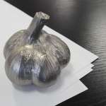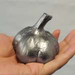 今回の「ステンレスにんにく石鹸」は、実際のにんにくを3Dスキャンして精巧に再現しているため、細かい表面のシワまでがにんにくそのものです。本来ならニオイがついてしまうにんにくに触れることで、逆にニオイを消すという不思議な体験が楽しめます。