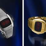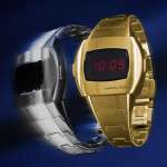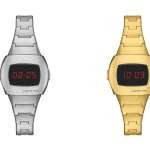 ムーブメントは“H-40e クォーツムーブメント”を搭載。反射型LCD(液晶ディスプレイ)と発光型OLED(有機発光ダイオード)を組み合わせたハイブリッドデジタルディスプレイを採用し、オリジナルと同様に赤色のセグメントで時刻と日付を表示します。ケース両側に配されたプッシュボタンを押すことで日付と時刻を同時に表示でき、時刻は24時間/12時間の設定が可能です。