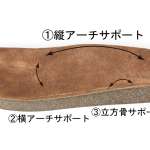縦・横・立方骨のアーチサポートが備わり、足裏全体で体重を支えることで疲れにくく、スニーカーのような安定感のある歩きやすさを実現しています。シューズ自体は合計19本のネジで組み立てられており、分解&アッパーやソールを変更することでベースモデルのシューズからサンダルに、サンダルからシューズに変形することが可能です。