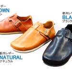 アッパーは栃木レザー(ナチュラル・ブラウン・ブラックの3色)かベロアレザー(ベージュ・マロン・チョコ・ブラックの4色)、フットベッド(ベージュ・マロン・チョコ・ブラックの4色)。