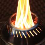 一方、耐熱ガラス製のファイアリングを使えば、本体上部の通気口から酸素を取り込みながら、勢いよく燃え上がる火柱を視覚的に楽しむことが可能。まるで火山のように大きく立ち上る炎は迫力満点。これまでのストーブや焚き火台にないダイナミックな炎が堪能できます。
