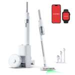 ロボット掃除機は直径24.8mm・高さ9.2cm、小回りのきくコンパクトサイズながら最大3000Paのパワフルな吸引力を装備、1回の充電で面積にして最大225平方メートル、時間にして最長150分間の連続稼働が可能。動作音も45dBと静かだから集合住宅でも気兼ねなし。市販のお掃除シートを使った拭き上げにも対応します。
