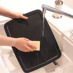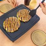 超薄型デザインなのでちょっとした隙間に立てかけられ、付属の収納スタンドを使用すれば、電源コードや専用ヘラなどと一緒にスッキリと収納できます。プレート本体は防水構造(IPX5)なのでそのまま水洗いできます。