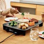 カラーはブラックのみで、プレート本体以外に電源コード、コントローラー、専用ヘラ、さらに各パーツを収納できる専用の収納スタンドが付属します。