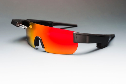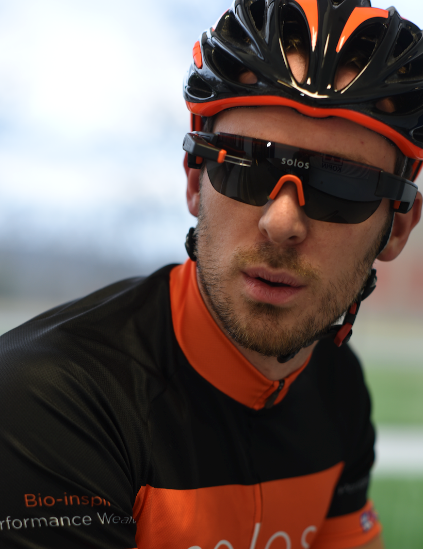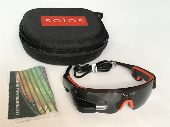「Solos」は、走行時間や速度、心拍数、ペダリングの回数といったデータを競技者のサイクリング状況を小型ディスプレイ上でリアルタイムに確認できるウエアラブルグラス。