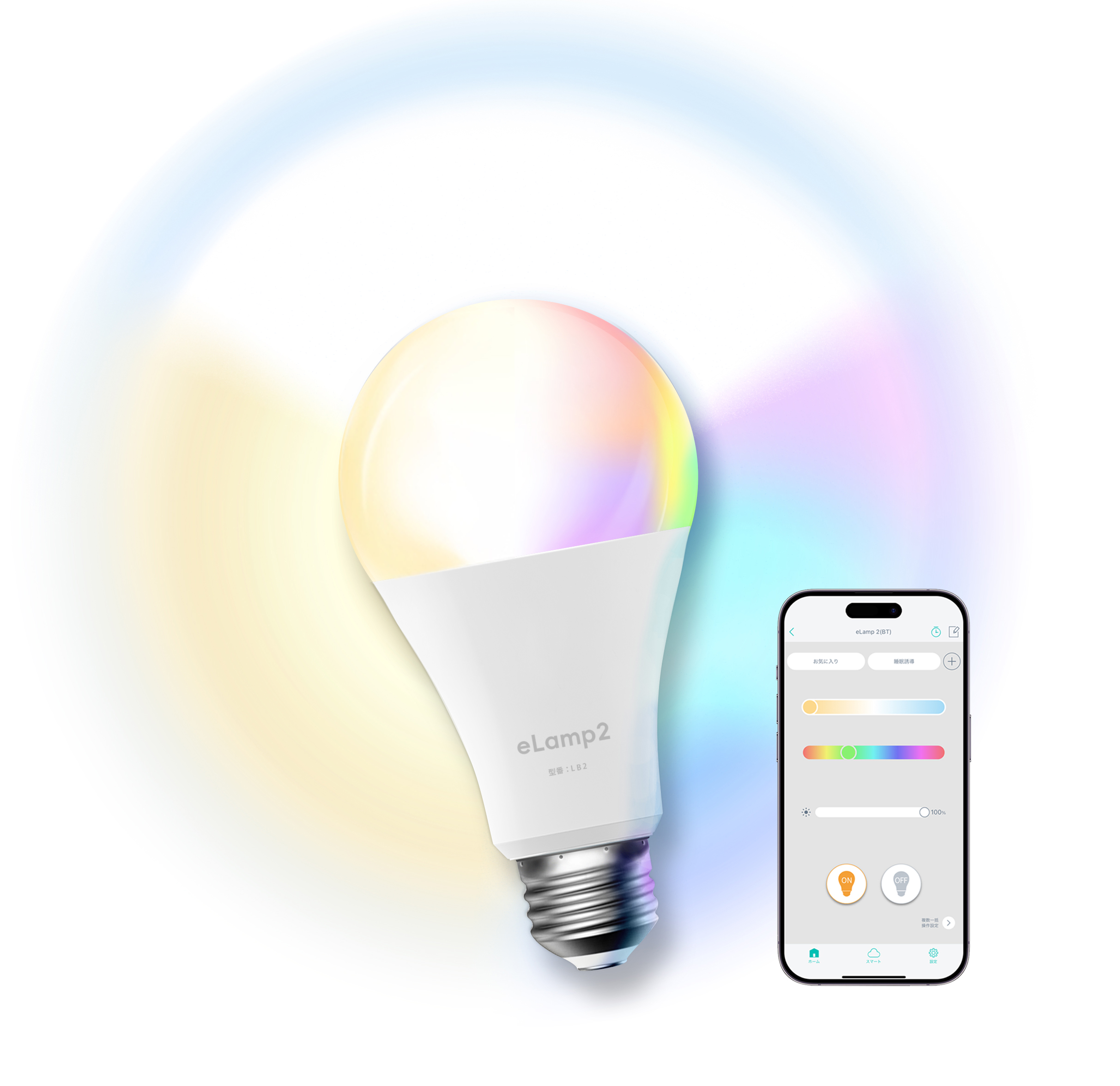 この「eLamp2」は、一般的なLED電球などと同じ要領で照明器具のソケットに装着、専用アプリで操作できるスマート電球。身近なスマホ操作で明るさや色を調整したり、点灯・消灯を操作したりできるのは普通のスマート照明と変わりませんが、特筆すべきはその導入のシンプルさです。