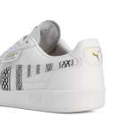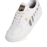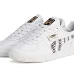 通常の「パルレモレザー」ではPUMA Catが描かれるシュータンロゴには、シリーズの看板モンスターともいえる火竜“リオレウス”が。また、左右のヒールタブにもそれぞれPUMA Catとリオレウスがゴールドでプリントされており、コラボならではの特別感を与えています。