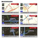 高速道路の案内は高速道路の施設名称と種類、そこまでの距離が3カ所まで表示され、上下矢印ボタンでスクロールが可能。また、分岐点に関連する情報も合わせて表示され、分岐点までの距離、名称、分岐先の方面が表示されます。