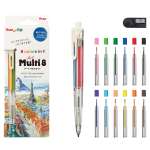 4つ目は、12色の替芯と専用の削り器を付属させた「Art Multi8 セット」(4180円)も同時発売という点。本体内蔵の8色の他に、4色の替芯(黒、緑、ペールオレンジ、紫)を各1本同梱しています。また、削り器は通常よりも細かいタッチで描きたいときに活躍します。
