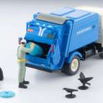 さらに、同スケールのゴミ収集作業員と青いゴミ容器、当時の黒いゴミ袋3種、ゴミを狙うカラス2種を同梱。小さいゴミ袋はゴミ容器に収納して蓋をかぶせることができ、当時の風景をリアルに楽しめます。