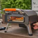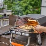 ピザストーンの直径は大きなピザも楽々焼ける30.5cm。また、窯の入口は幅32cm、高さも最高部12.5cmとなったことで、若鶏の丸焼きやポルケッタなど高さのある食材を使ったオーブン料理も楽しめるように。加えて、フロントの扉には頑丈なハンドルが付いており、扉の開閉はもちろん使用前後に本体を持ち上げての移動もしやすくなっています。