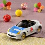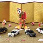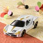「【白鳥(はくちょう)】日産 フェアレディZ」は、国産スポーツカーを代表する「フェアレディZ」の6代目モデル「Z34」がモチーフ。美や愛、幸福の象徴とされる白鳥をイメージした白いボディに、クリアタイヤで湖に佇む美しい白鳥を表現しています。また、車体横にはお正月らしく、しめ縄をデザイン。運転席を覆うソフトトップルーフは脱着が可能なので、オープン仕様で飾れます。