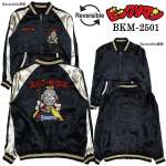 「BKM-2502 ヘッドロココ×サタンマリアスカジャン」(3万5200円)は、天使ヘッドと悪魔ヘッドというライバル関係にあるキャラクター同士がデザインされた一着です。
