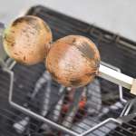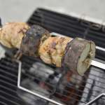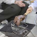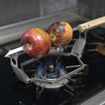 使い方も超簡単。肉などの食材をサーベルにさして、焼き網やコンロの上にスタンドをセットしたら、サーベルをスタンドの土台に置いて回しながら焼くだけ。食欲をそそるビジュアルに、思わずワクワクしてしまいそう。