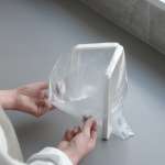 食卓以外では、リビングや洗面所などで発生しがちな小さなゴミの一時置きなどに使用するのもアリ。コンパクトで持ち運びやすいので、アウトドアでも活躍しそう。アイデア次第で、どんなスペースでも使える「ポリ袋ホルダー」。一度使ったら、手放せなくなりそうなアイテムです。